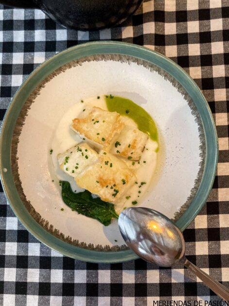 Siempre en su cocina, el pescado del día cambia según la temporada y se elabora siempre respetando el producto, como en este bacalao con su pilpil y licuado verde o el sashimi de atún con cítricos . Un lujo.