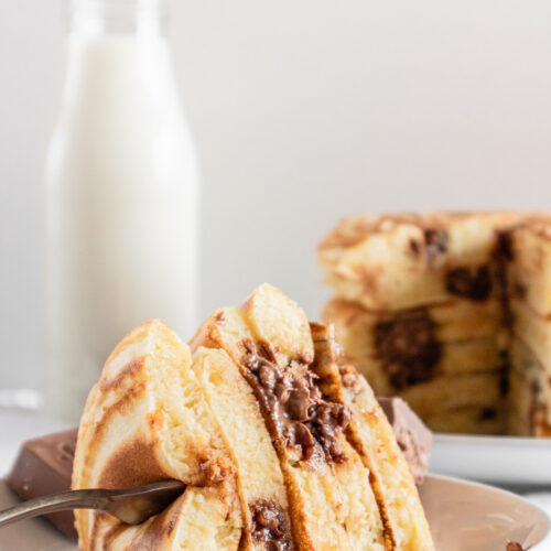 Freshly made pancakes are the best option for our holiday mornings with no job, and if we have Suchard Nougat during Christmas Holidays even better.