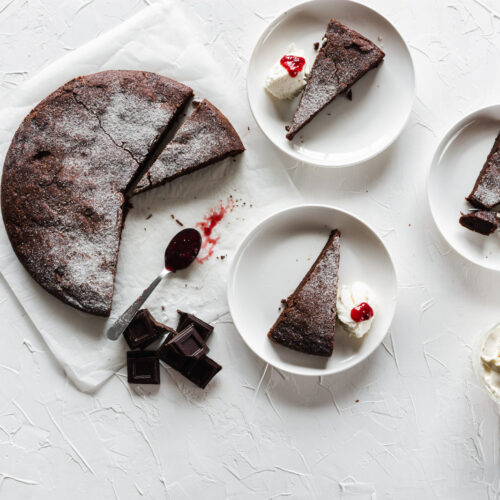 También podéis acompañar la receta de nata montada, mermelada de frutos rojos o helado. El sabor a chocolate de la tarta es intenso, por lo que cualquier acompañamiento cremoso le va genial.