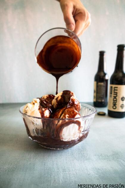 El chocolate y la cerveza negra combinan genial, con helado es la salsa de chocolate perfecta.