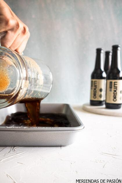 Yo he reducido unos 3-4 minutos en el fuego la cerveza y el café, con azúcar moreno, porque me ha gustado el sabor que tiene al mezclarse los sabores.